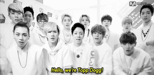Paglalarawan ng Content: a group of young men are posing for a photo and one of them says hello we 're topp dogg