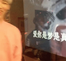 Paglalarawan ng Content: a man is standing in front of a screen that says ' i love you ' in chinese