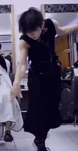 Paglalarawan ng Content: a young man in a black dress is standing in a room with his arms outstretched .