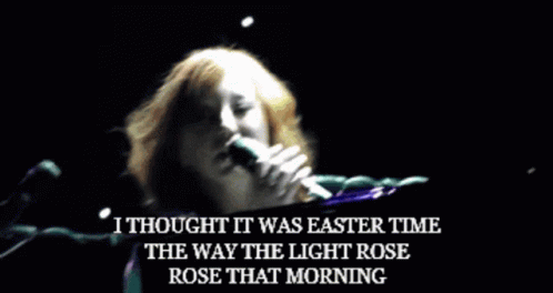 Paglalarawan ng Content: a woman singing into a microphone with the words i thought it was easter time