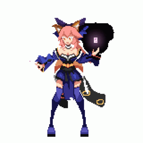 Paglalarawan ng Content: a pixel art of a fox girl holding a purple object