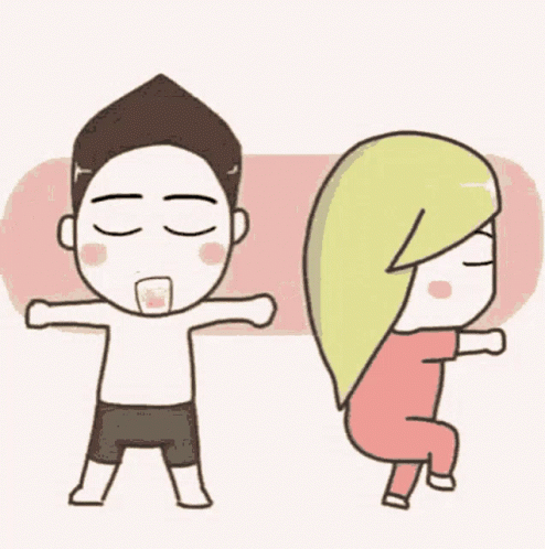 Paglalarawan ng Content: a cartoon of a man and a woman standing next to each other with their arms outstretched