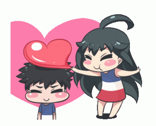 Paglalarawan ng Content: a girl with a heart on her head stands next to a boy