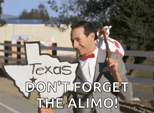Paglalarawan ng Content: a man in a suit and bow tie is holding a sign that says texas don 't forget the alimo
