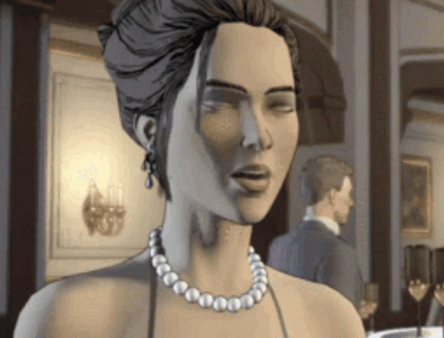 Paglalarawan ng Content: a woman wearing a pearl necklace and earrings looks at the camera