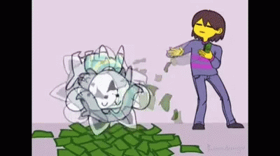 Paglalarawan ng Content: a cartoon of a person standing next to a pile of money and a flower .