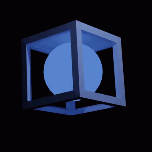 Paglalarawan ng Content: a blue cube with a blue sphere inside of it on a black background