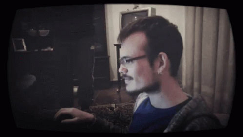 Paglalarawan ng Content: a man with a beard and ear piercings is sitting in front of a tv