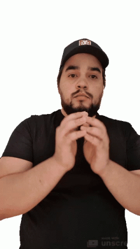 Paglalarawan ng Content: a man with a beard wearing a black shirt and a hat that says ' made with unscreen ' on it