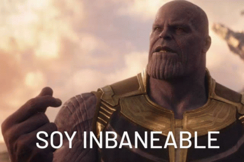 Paglalarawan ng Content: thanos from the movie avengers infinity war is pointing at the camera with the words soy inbaneable below him