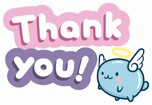 Paglalarawan ng Content: a sticker that says thank you with a blue cat with angel wings