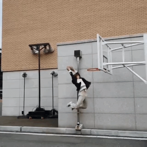 Paglalarawan ng Content: a person is jumping into a basketball hoop on the side of a building