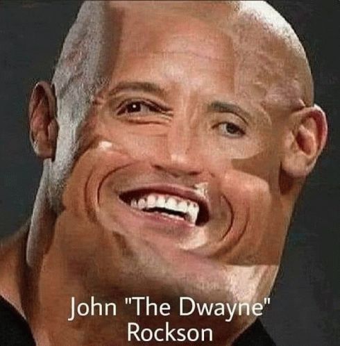 Paglalarawan ng Content: a close up of a man 's face with the words `` john the dwayne rockson '' written on it .
