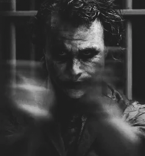 Paglalarawan ng Content: a black and white photo of the joker smoking a cigarette in a jail cell .