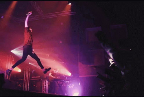Paglalarawan ng Content: a man is jumping in the air with a microphone in his hand