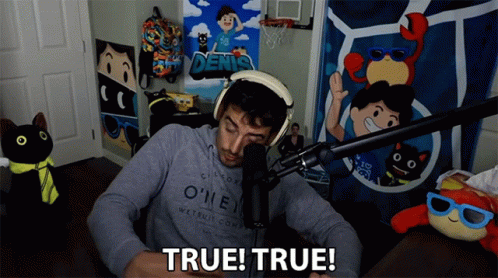 Paglalarawan ng Content: a man sitting in front of a microphone with the words true true behind him