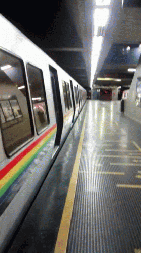 Paglalarawan ng Content: a subway car with a rainbow stripe on the side of it