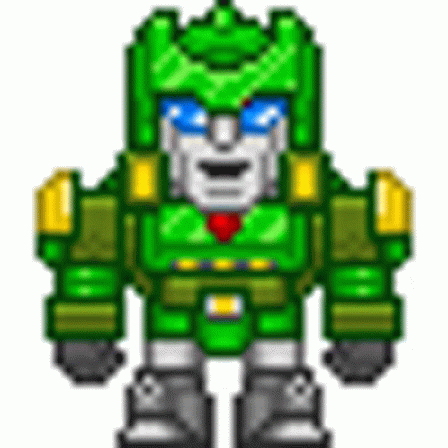 Paglalarawan ng Content: a pixel art of a green robot with a helmet on .