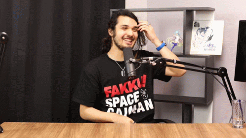 Paglalarawan ng Content: a man wearing a black t-shirt that says fakk space cajaman