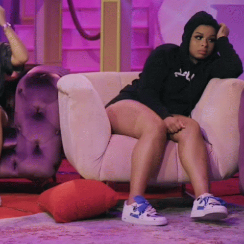 Paglalarawan ng Content: a woman in a black hoodie sits on a white couch