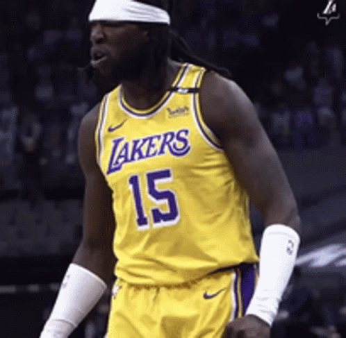 Paglalarawan ng Content: a basketball player wearing a yellow lakers jersey