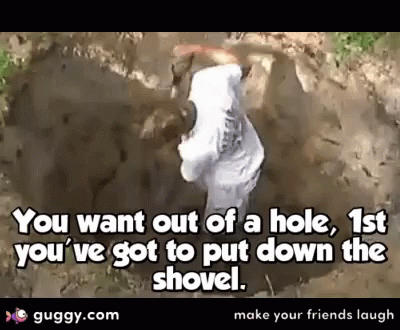 Paglalarawan ng Content: a man is digging a hole with a shovel and says you want out of a hole 1st