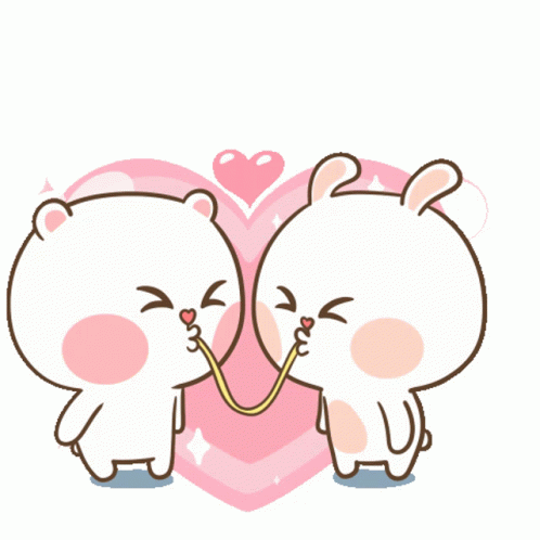 Paglalarawan ng Content: a couple of rabbits are kissing in front of a pink heart