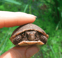 Paglalarawan ng Content: a person is holding a small brown turtle in their hand