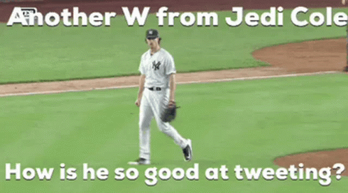 - Paglalarawan ng Content: a baseball player is walking on the field with a caption that says another w from jedi cole how is he so good at tweeting