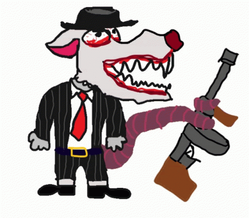 Paglalarawan ng Content: a cartoon drawing of a rat in a suit holding a gun