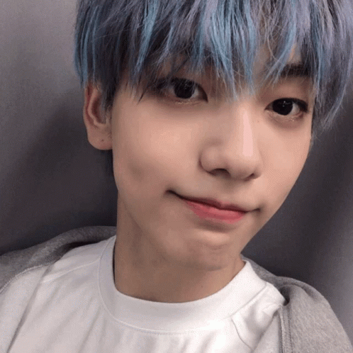 Paglalarawan ng Content: a close up of a person 's face with blue hair and a white shirt
