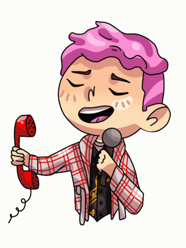 Paglalarawan ng Content: a cartoon of a man with pink hair holding a microphone and a phone