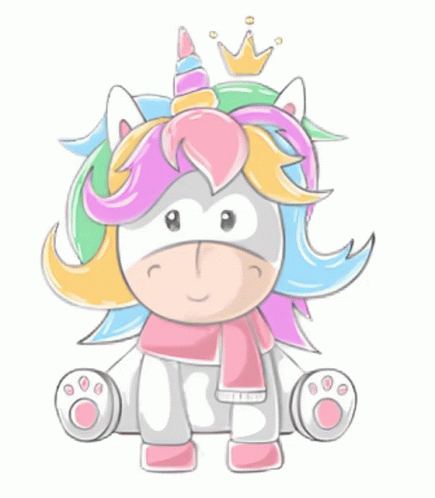 Paglalarawan ng Content: a unicorn wearing a pink scarf and a crown on its horn
