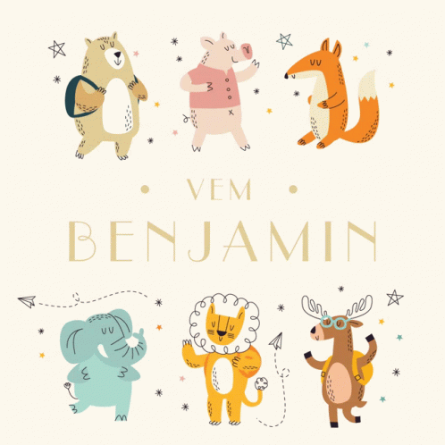 Paglalarawan ng Content: the name benjamin is on a white background with animals
