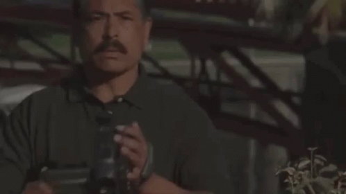 Paglalarawan ng Content: a man with a mustache is holding a camera in his right hand .