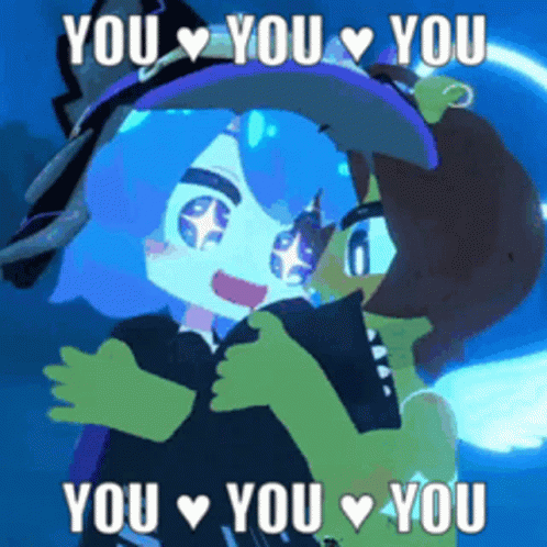 Paglalarawan ng Content: two cartoon characters hugging each other with the words you you you you in white letters