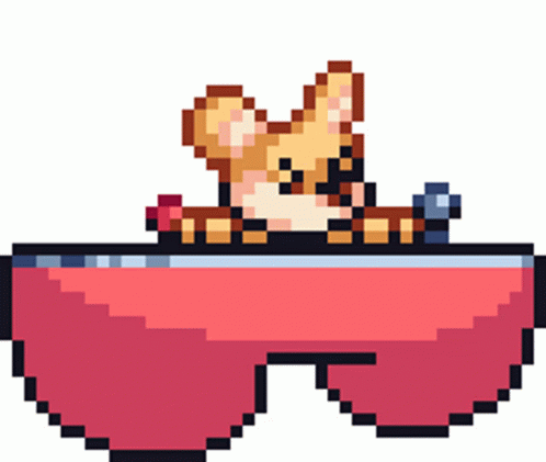 Paglalarawan ng Content: a pixel art of a dog peeking out of a pair of red sunglasses .