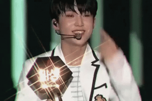 Paglalarawan ng Content: a young man in a white suit is holding a microphone and smiling while holding a light .