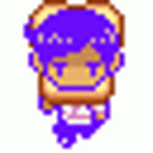 Paglalarawan ng Content: a pixel art drawing of a girl with purple hair and a purple hat .