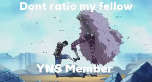 Paglalarawan ng Content: a cartoon of a man kicking another man with the caption " dont ratio my fellow yns member " at the bottom