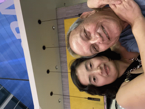 Paglalarawan ng Content: a man and a woman are posing for a picture in front of a sign that says vc on it