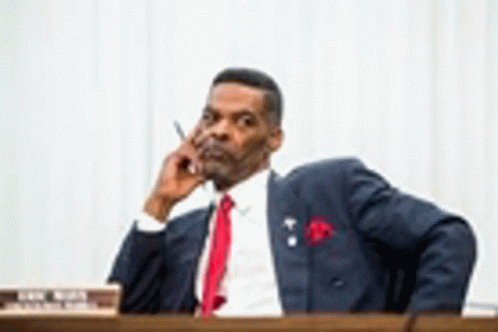 Paglalarawan ng Content: a man in a suit and tie is sitting at a table with his hand on his chin .