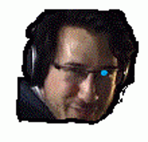 Paglalarawan ng Content: a close up of a man wearing headphones and glasses with a blue eye .