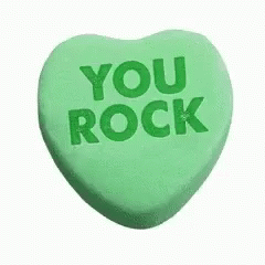 Paglalarawan ng Content: a green heart shaped candy that says you rock on it