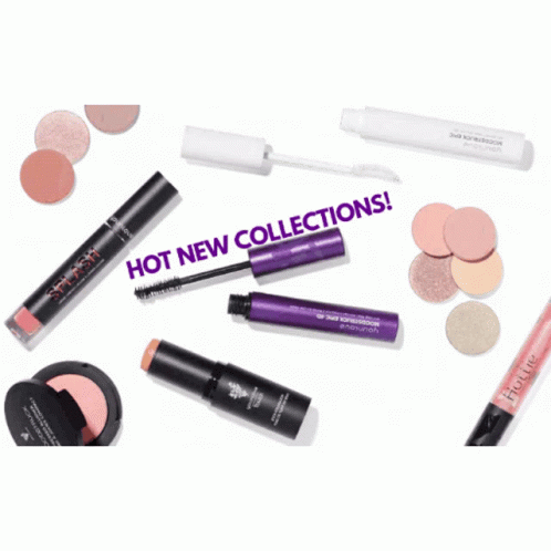 Paglalarawan ng Content: a variety of makeup products are laid out with the words hot new collections