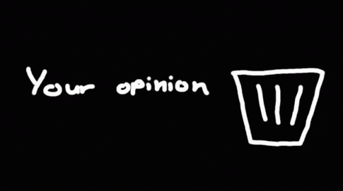 Paglalarawan ng Content: a black background with a white drawing of a trash can and the words " your opinion "