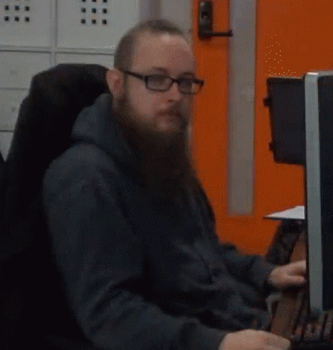 Paglalarawan ng Content: a man with a beard wearing glasses is sitting in front of a computer
