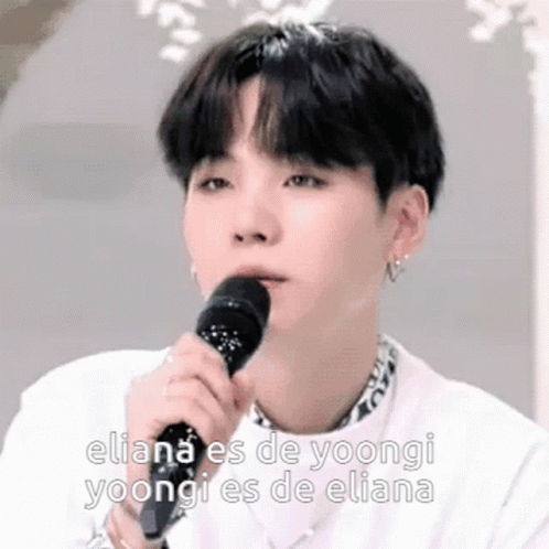 Paglalarawan ng Content: a young man is singing into a microphone with the words eliana es de yoongi yoongi es de eliana .