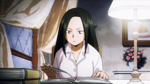 Paglalarawan ng Content: a girl with long black hair is reading a book in front of a lamp