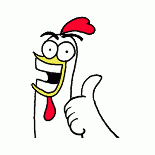 Paglalarawan ng Content: a cartoon chicken with a red crest and a yellow beak is laughing .
